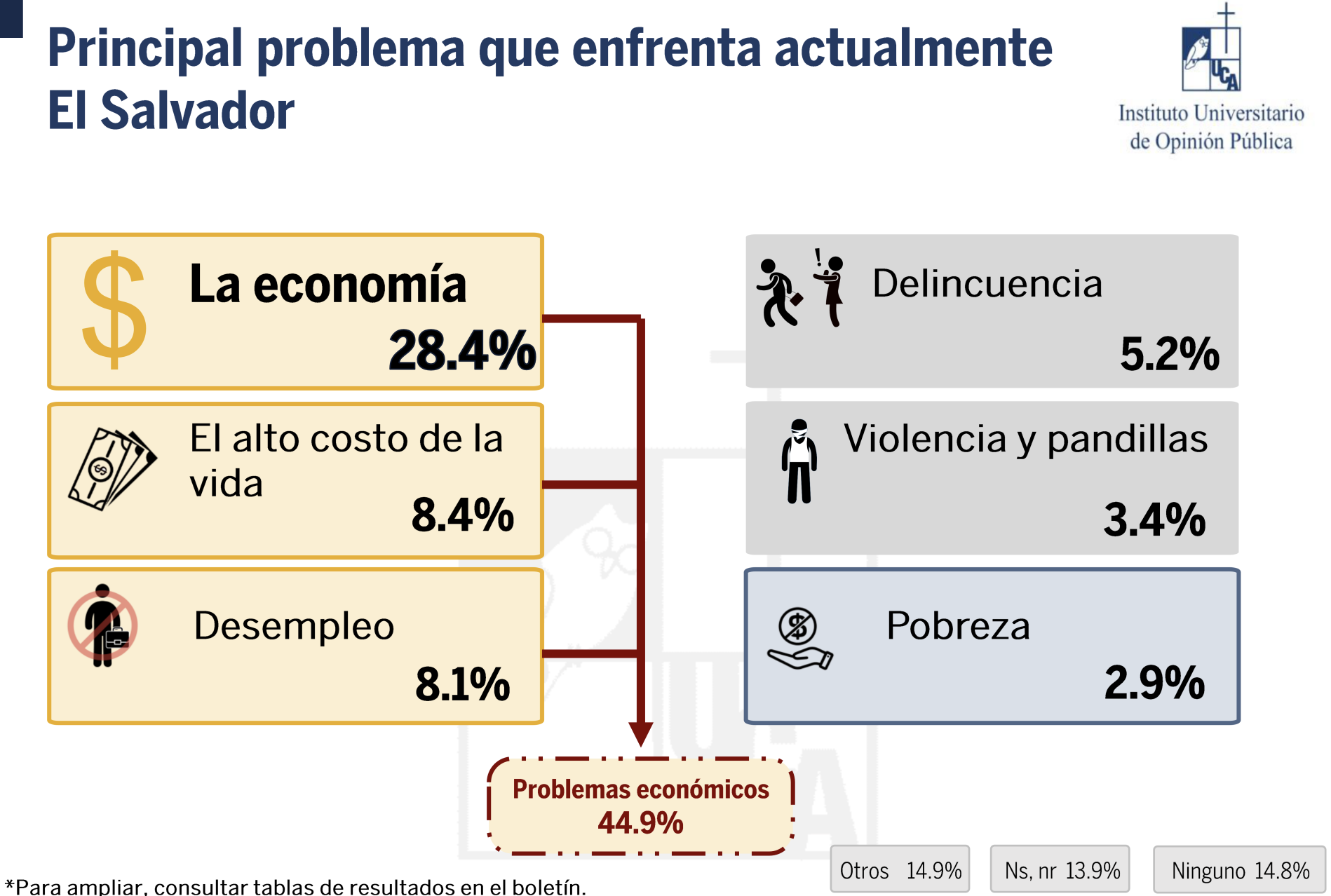 La economía se consolidó como el principal problema que enfrenta actualmente El Salvador, según la más reciente encuesta “La población salvadoreña opina sobre el año 2025”, presentada por el Instituto Universitario de Opinión Pública de la Universidad Centroamericana José Simeón Cañas.